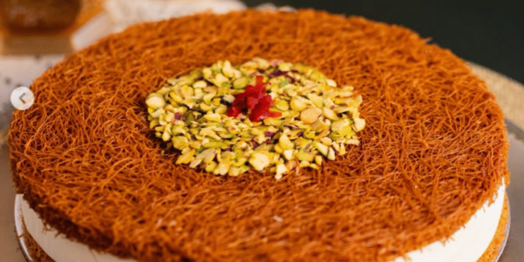 This elegant dessert brings together layers of traditional Mafroukeh and creamy Ashta ice cream, finished with pistachios and delicate aromatic notes. The flavor is light yet indulgent, making it a refreshing way to end a festive Eid meal.